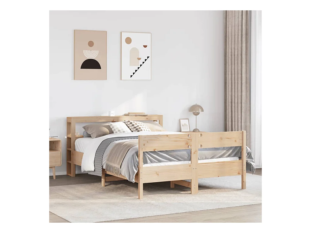 Bedframe en hoofdbord zonder matras bruin gewaxt 120x200 cm