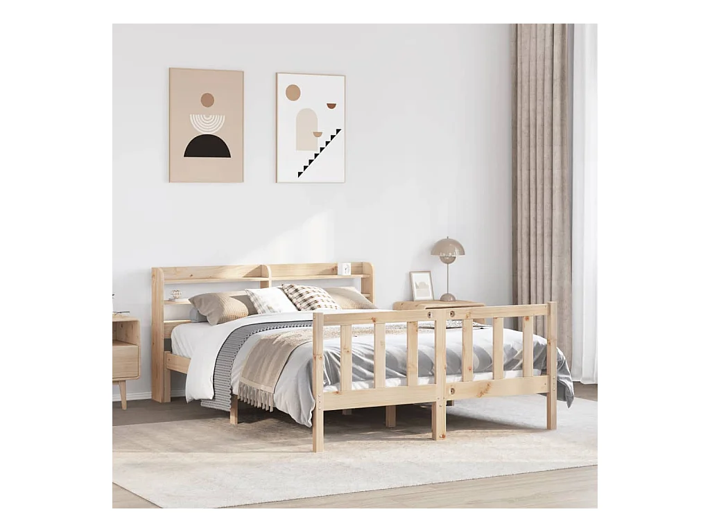 Bedframe en hoofdbord zonder matras bruin gewaxt 120x200 cm
