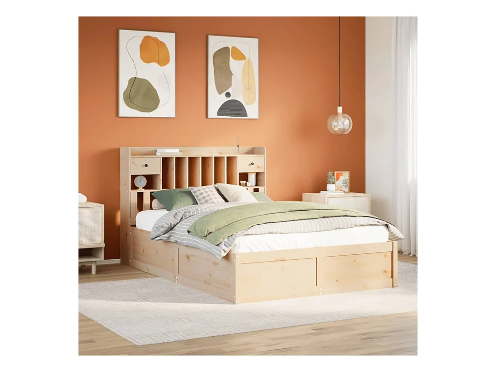 Bibliotheekbed zonder matras 140x190 cm massief grenenhout