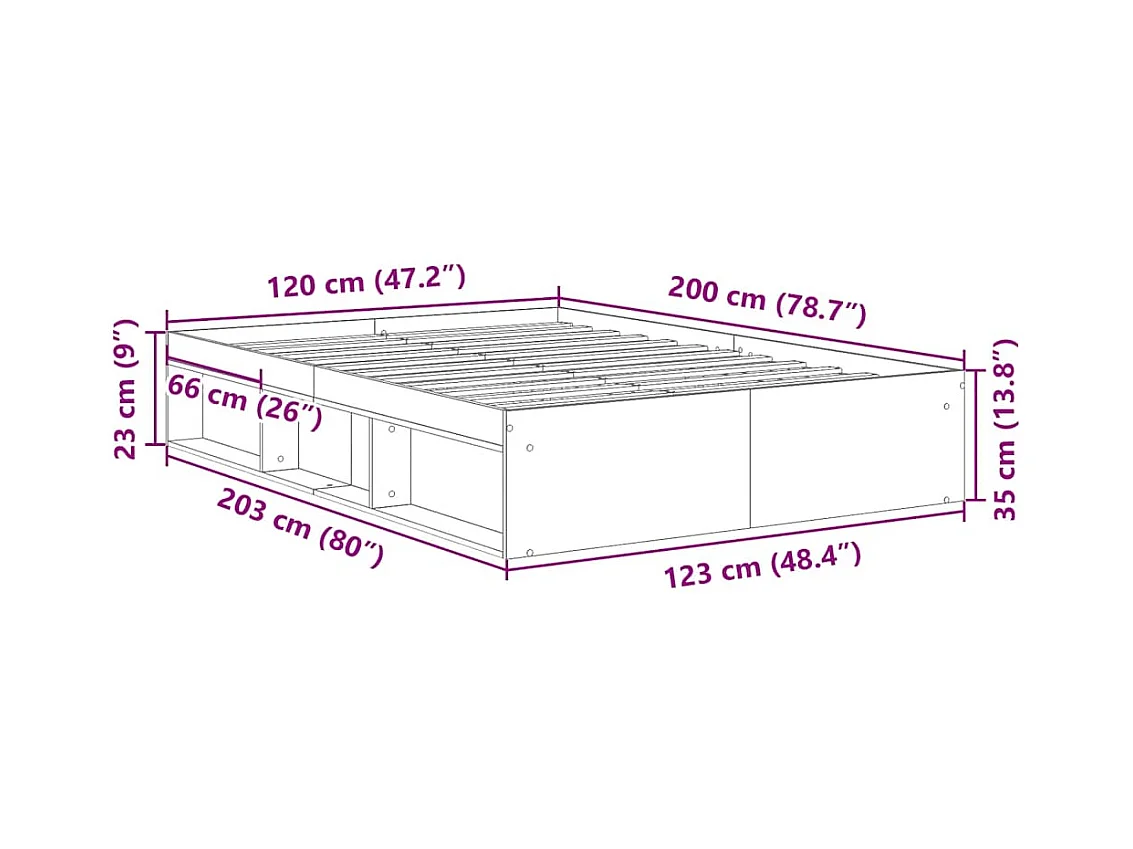 Bedframe zonder matras hout sonoma eikenkleurig 120x200 cm