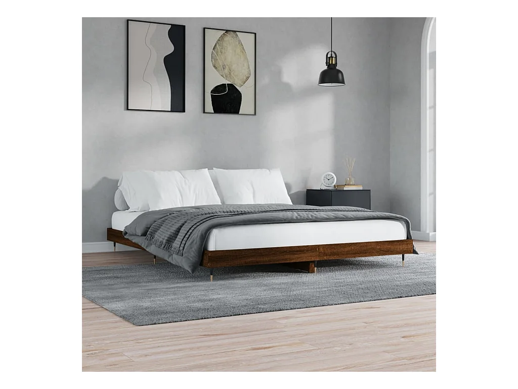 Bedframe hoofdbord zonder matras bruin eiken 200x200 cm