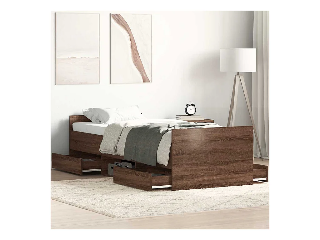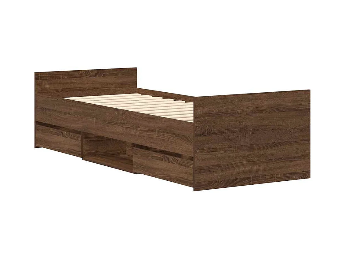 Bedframe met lades zonder matras bruin eiken 75x190 cm
