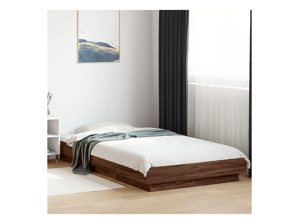 Bedframe en LED-verlichting zonder matras gerookt eiken 75x190 cm