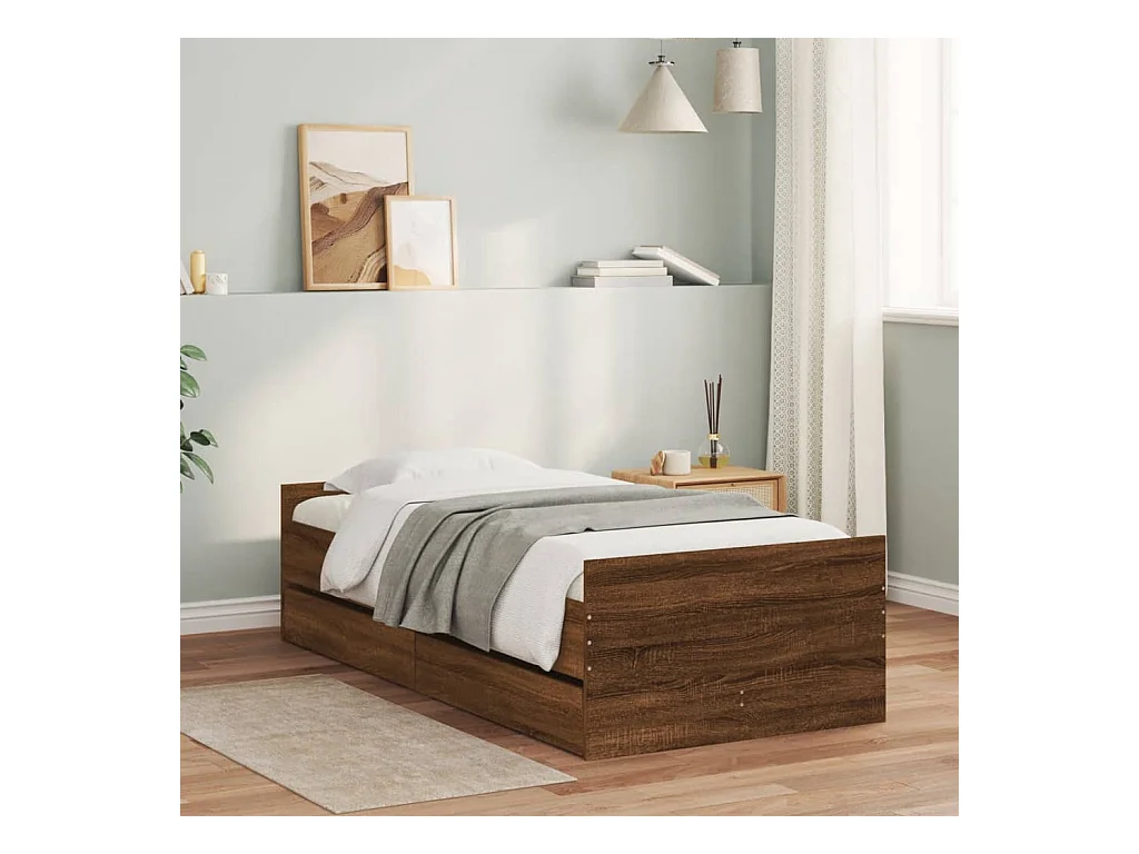 Bedframe met lade zonder matras bruin eiken 75x190 cm