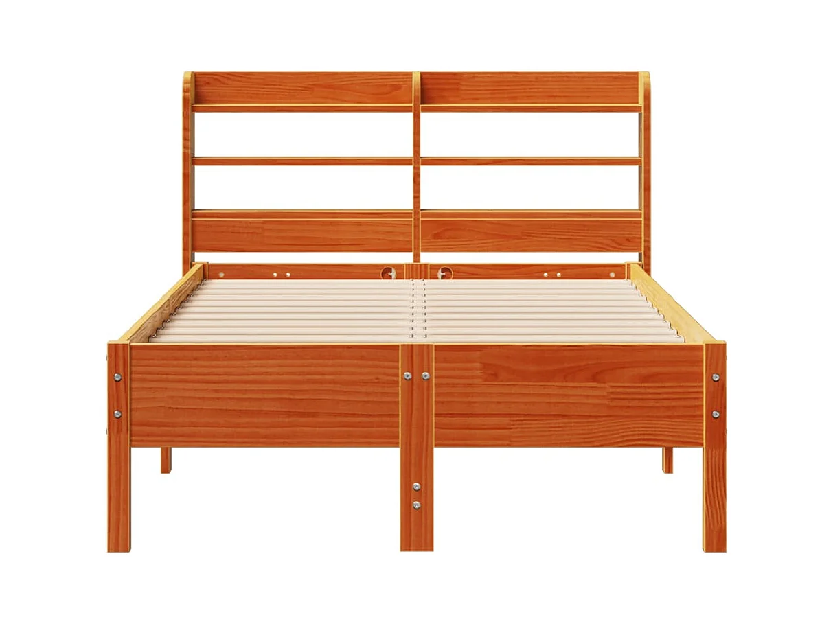 Bedframe en hoofdbord zonder matras bruin gewaxt 120x190 cm