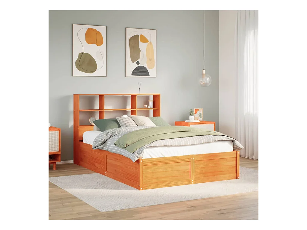 Boekenkastbed zonder matras, bruine was, 140x200 cm, massief grenen