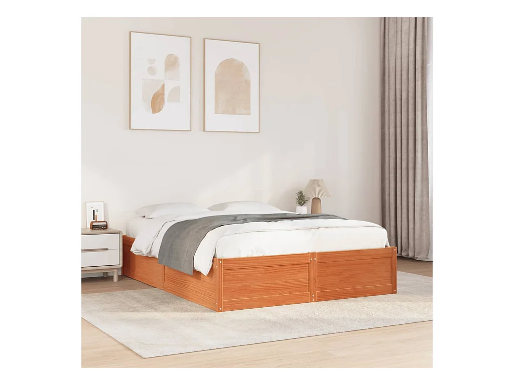 Bedframe zonder matras, bruine was, 140x200cm, massief grenenhout