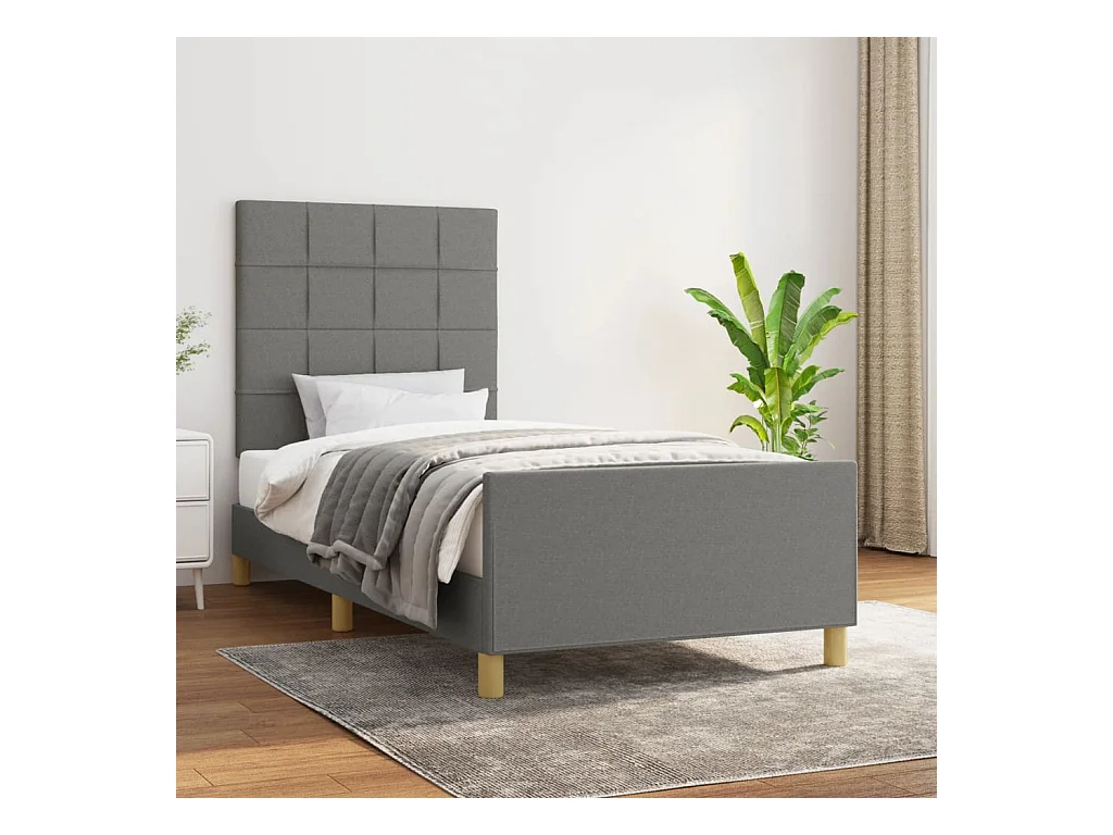 Bedframe zonder matras donkergrijs 90x200 cm stof