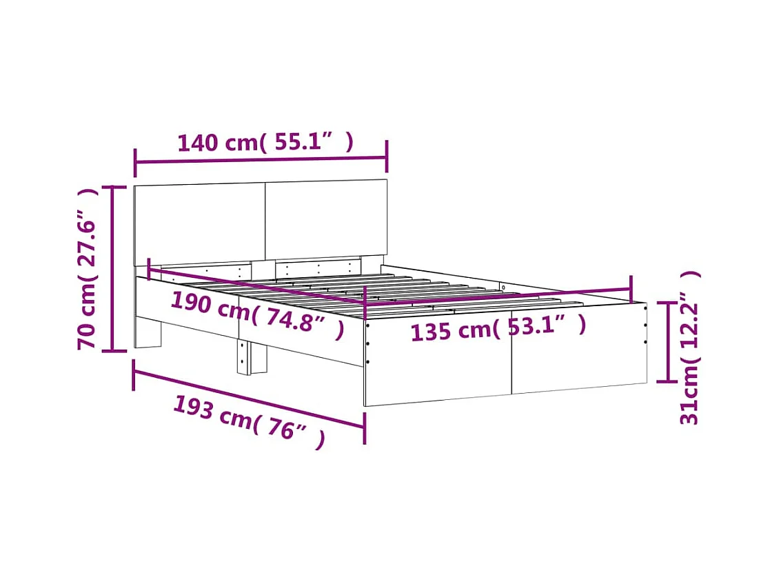 Bedframe met LED zonder matras gerookt eiken 135x190 cm