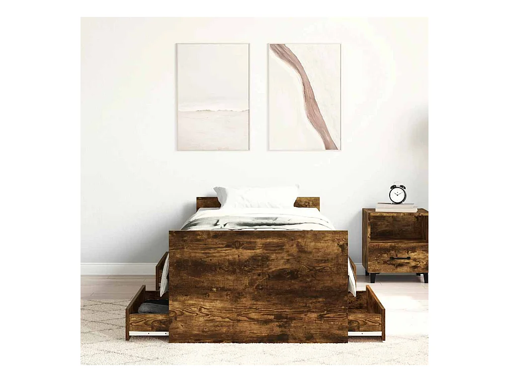 Bedframe met lades zonder matras bruin eiken 75x190 cm