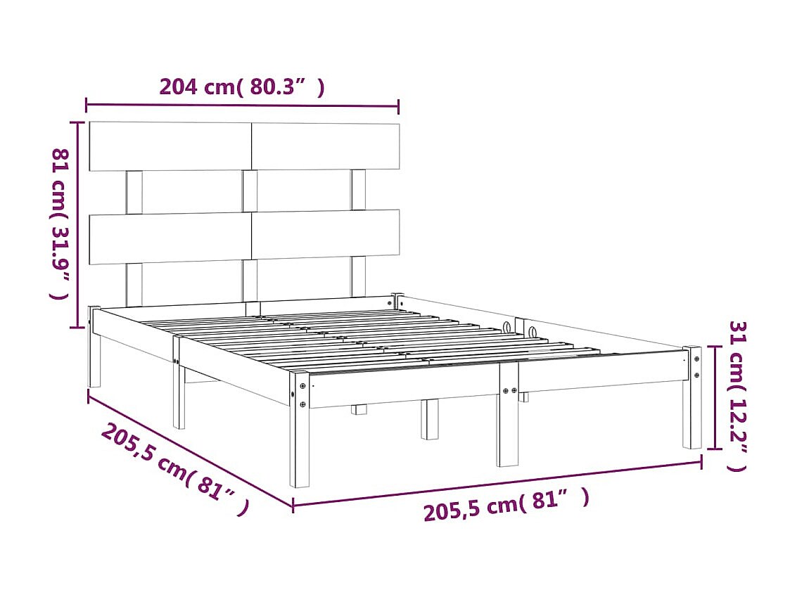 Bedframe zonder matras grijs 200x200 cm massief hout