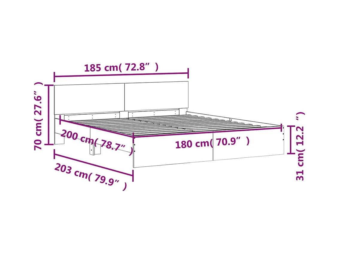 Bedframe met LED zonder matras Sonoma grijs 180x200 cm