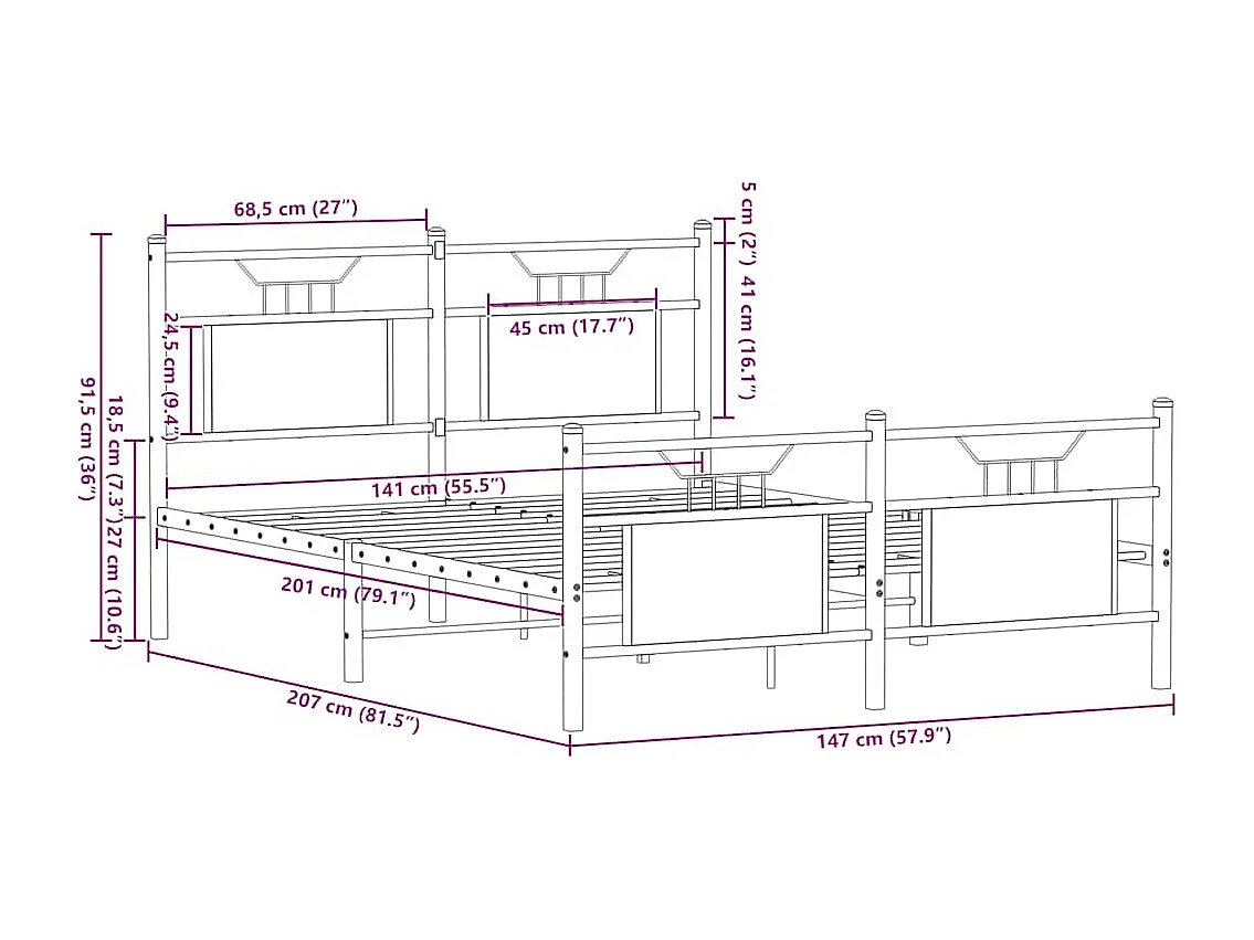 Bedframe zonder matras bewerkt hout bruin eikenkleur 140x200 cm