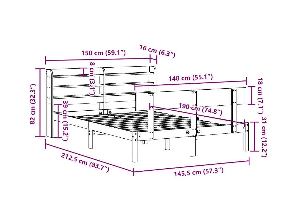 Bedframe met hoofdbord massief grenenhout 140x190 cm