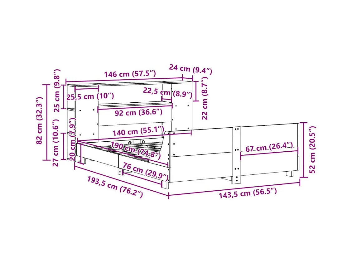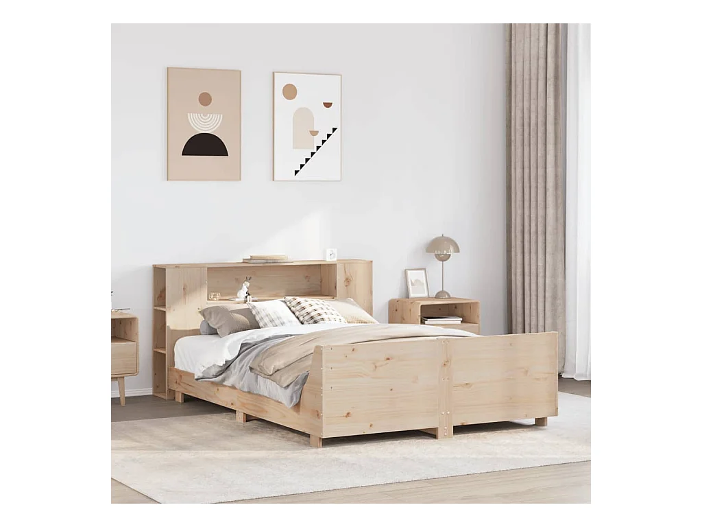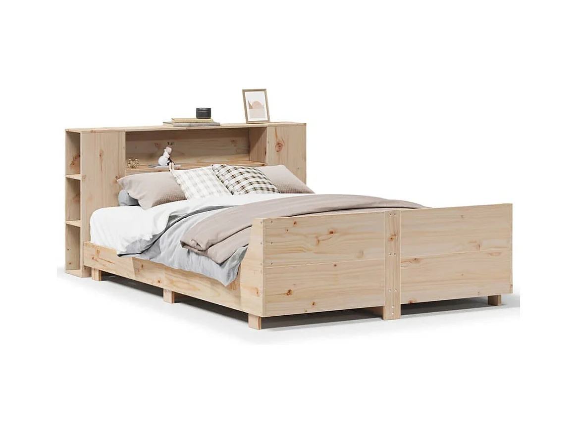 Bed met boekenkast zonder matras massief grenenhout 140x190 cm