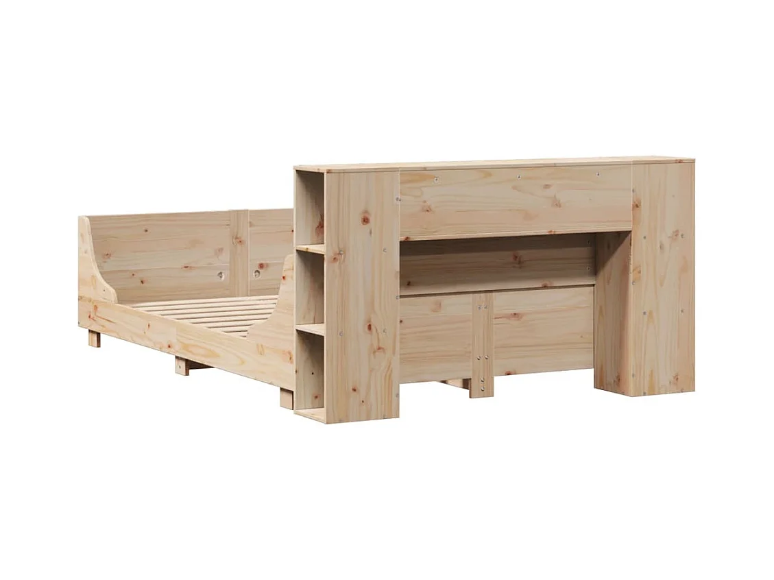 Bed met boekenkast zonder matras massief grenenhout 140x200 cm
