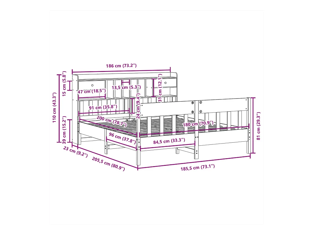 Bedframe zonder matras massief grenenhout 180x200 cm