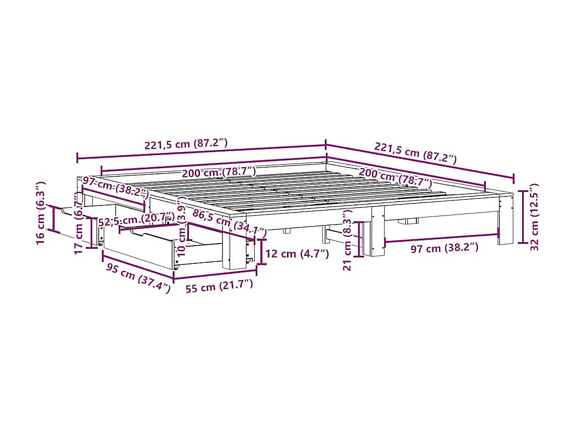 Bedframe zonder matras massief grenenhout 200x200 cm