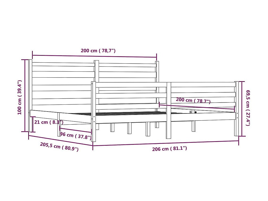 Bedframe zonder matras massief grenenhout 200x200 cm grijs