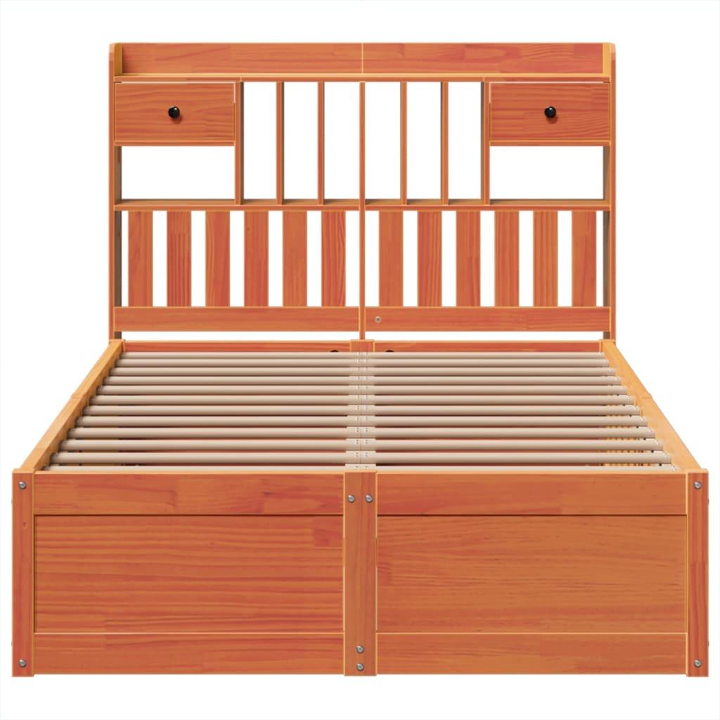 Bed met boekenkast zonder matras grenenhout wasbruin 120x200 cm
