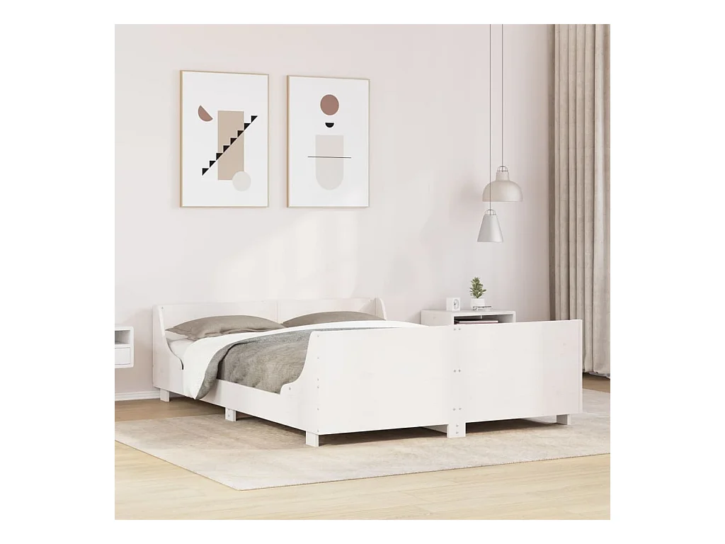 Bedframe zonder matras massief grenenhout wit 140x190 cm