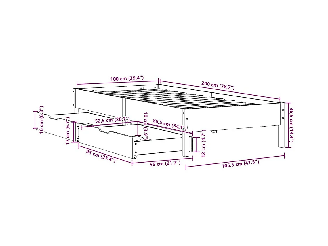 Bedframe zonder matras massief grenenhout wit 140x200 cm