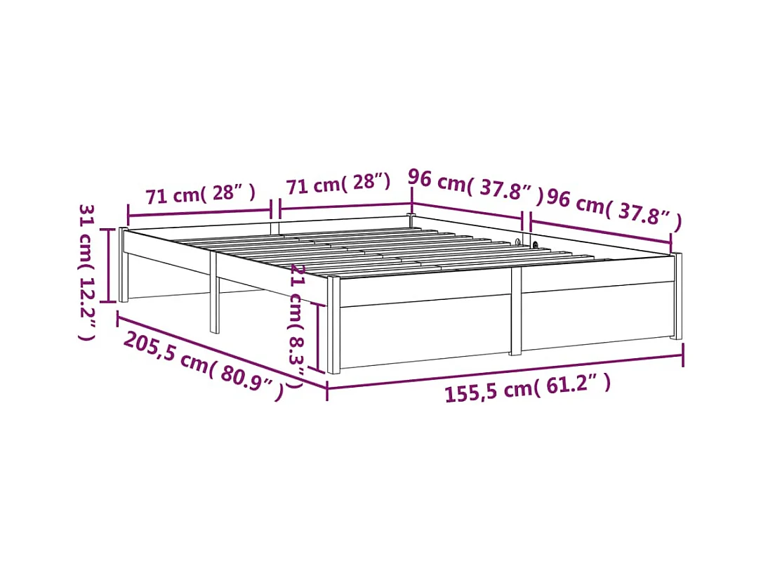 Bedframe zonder matras massief hout 150x200 cm