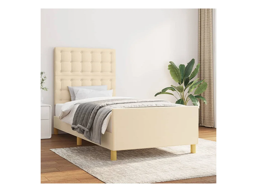 Bedframe zonder matras met crème hoofdbord 80x200cm stof