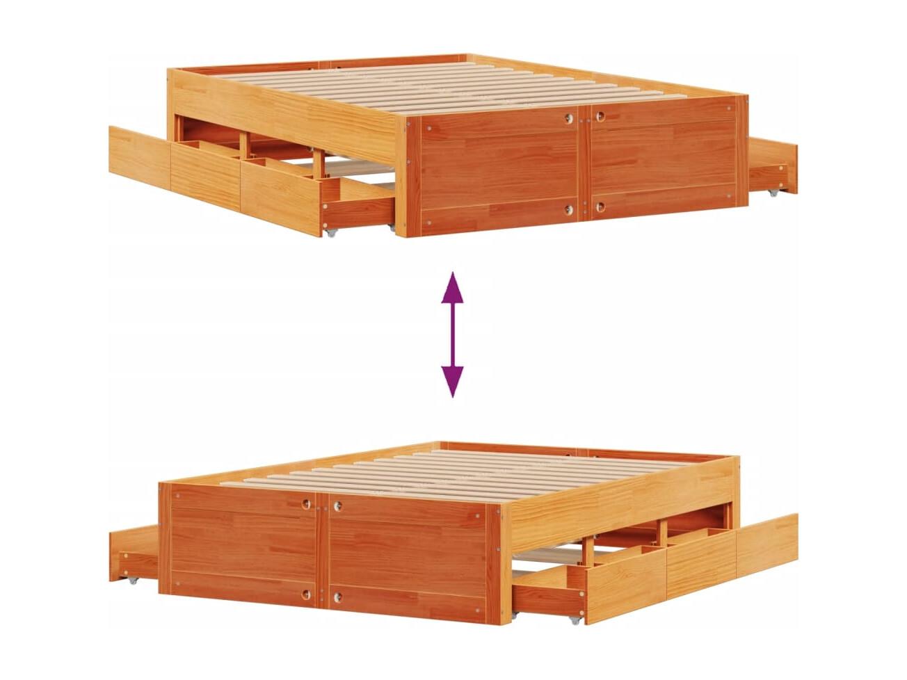 Bedframe zonder matras met lades grenenhout wasbruin 160x200 cm