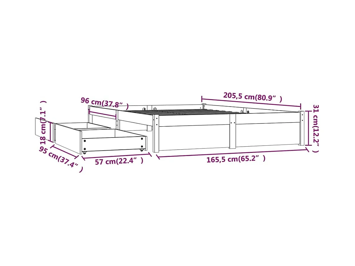 Bedframe zonder matras met lades wit 160x200 cm