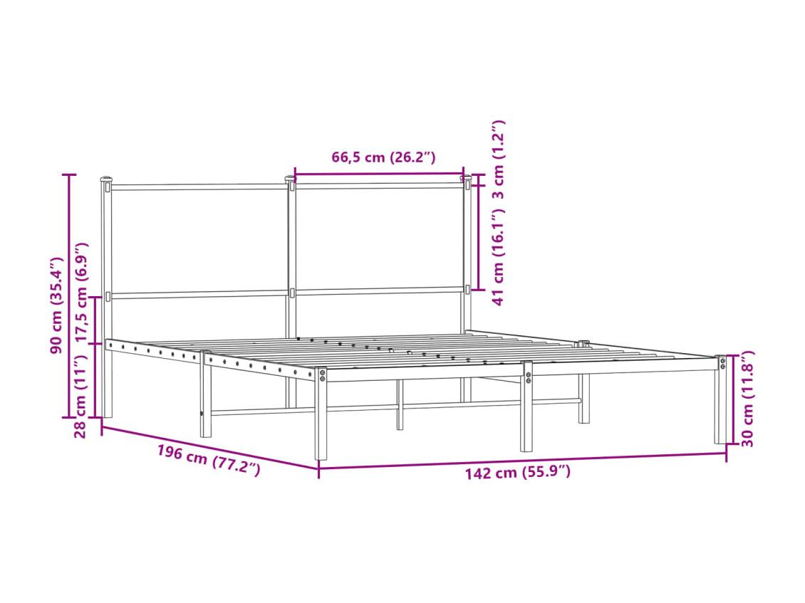 Bedframe zonder matras metaal gerookt eikenkleurig 137x190 cm