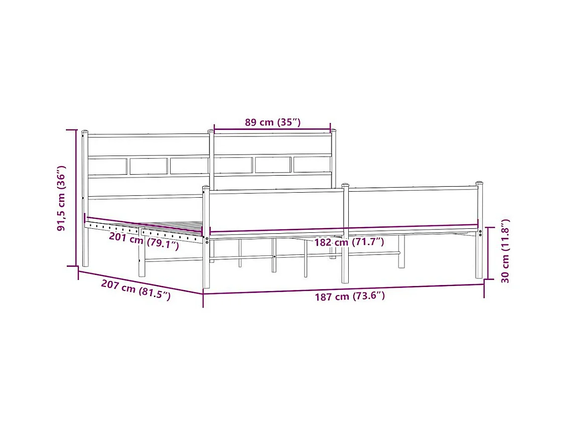 Bedframe zonder matras metaal sonoma eikenkleurig 180x200 cm