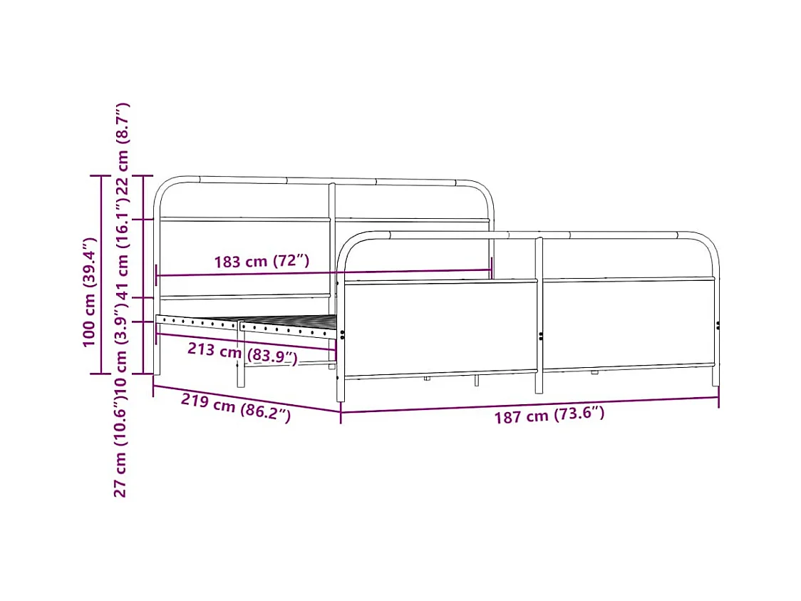 Bedframe zonder matras metaal sonoma eikenkleurig 183x213 cm