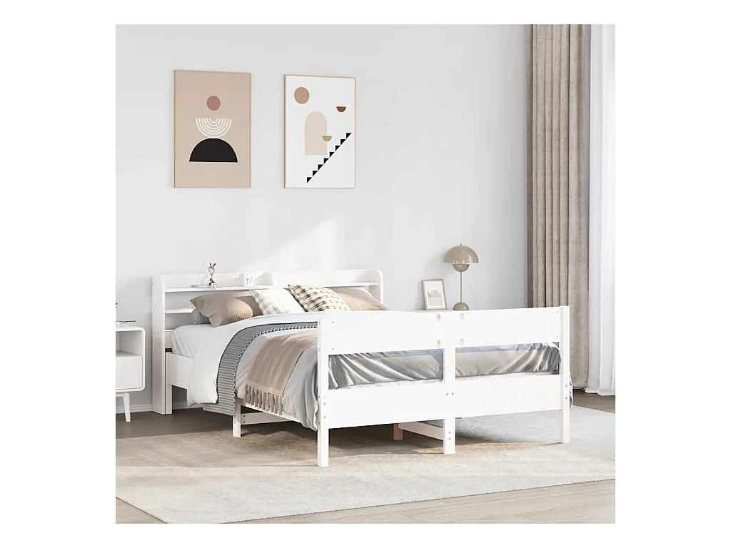 Bedframe met wit hoofdeinde 120x190 cm massief grenenhout