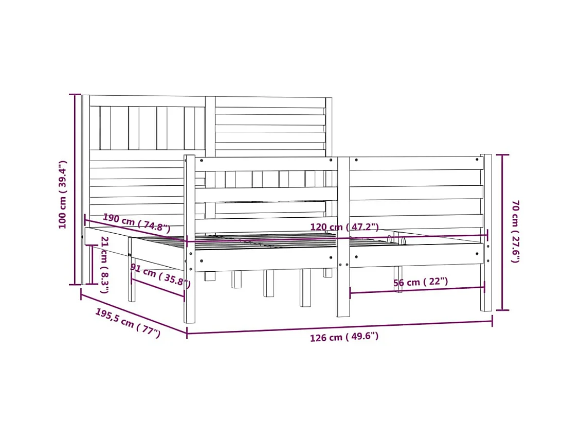 Bedframe zonder matras wit massief hout 120x190 cm