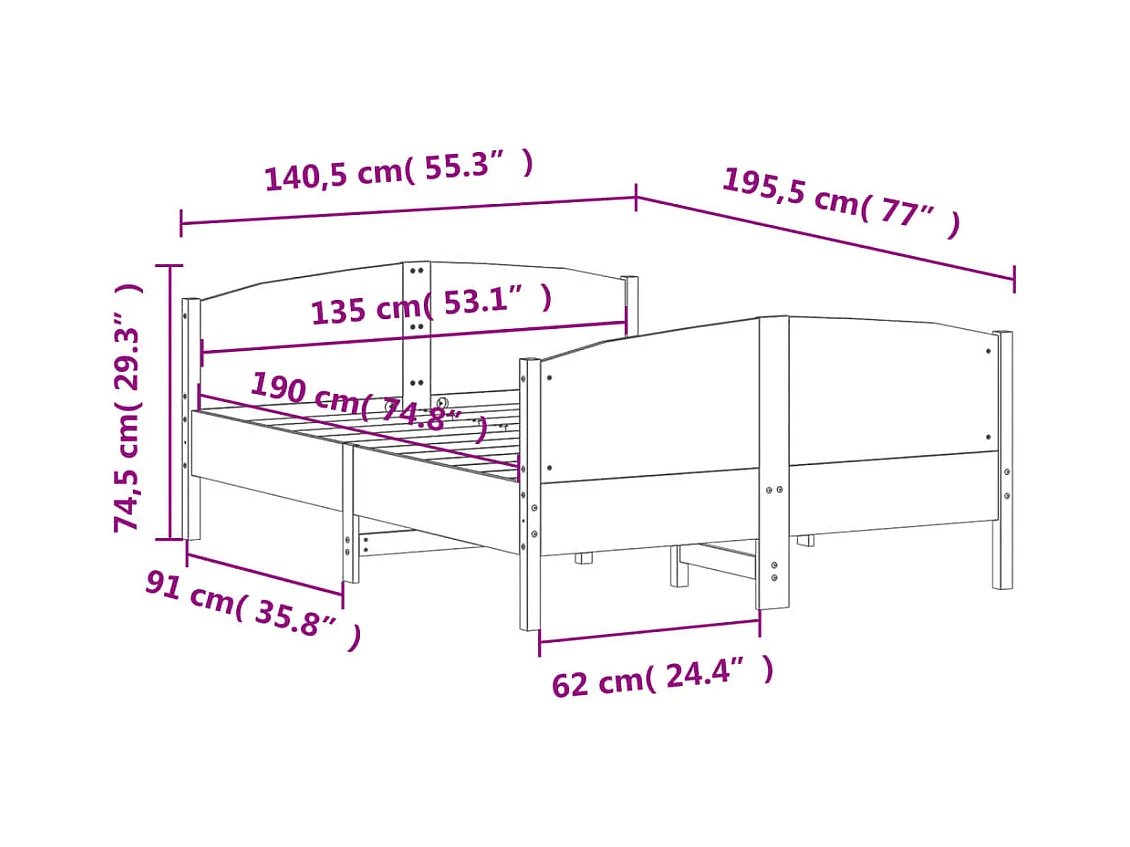Bedframe zonder matras wit 135x190 cm massief grenenhout