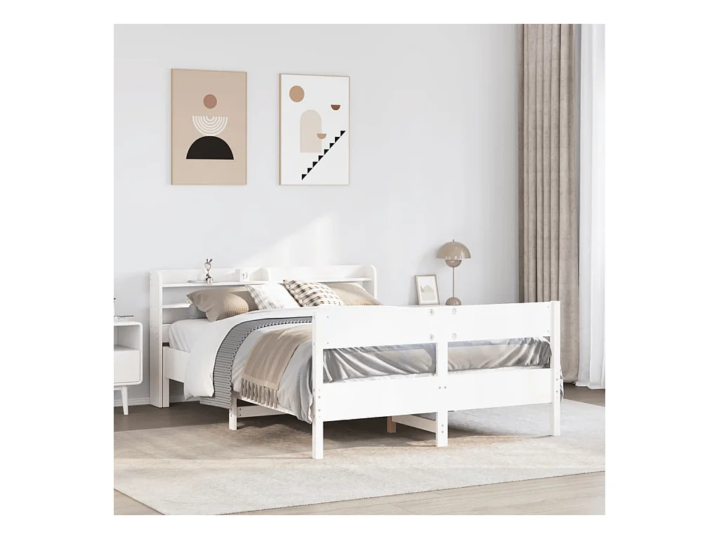 Wit bedframe en hoofdbord 140x190 cm massief grenenhout