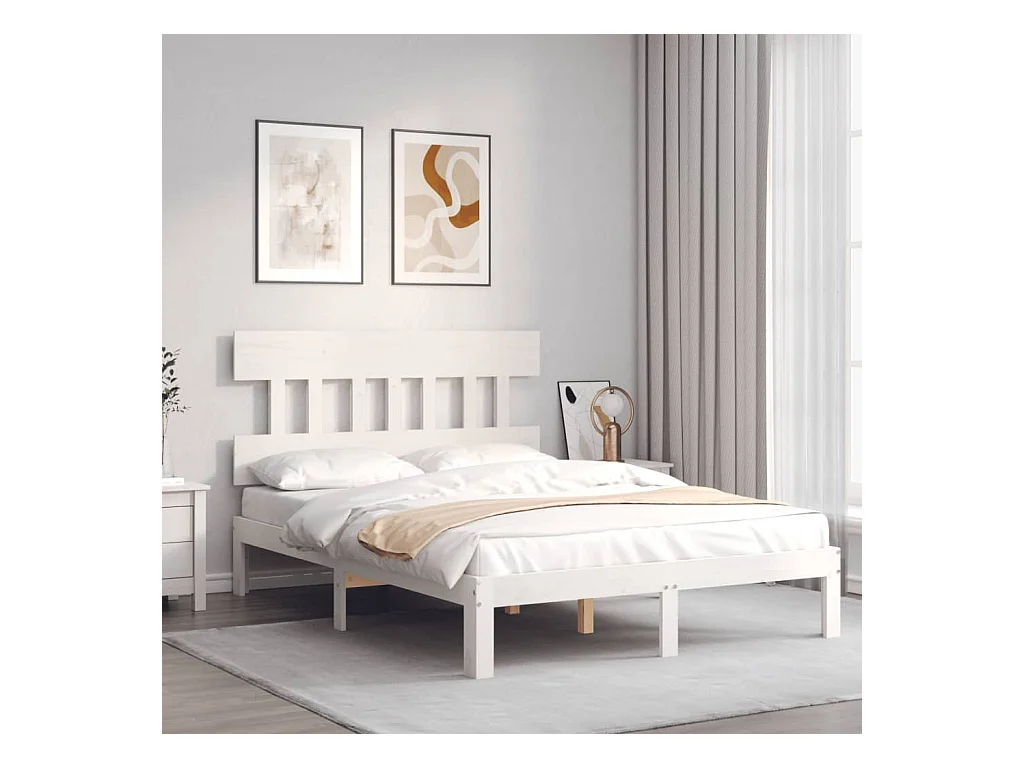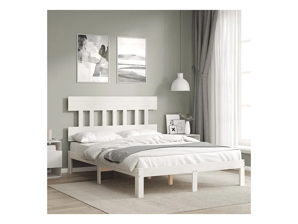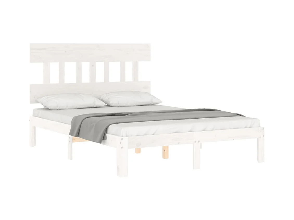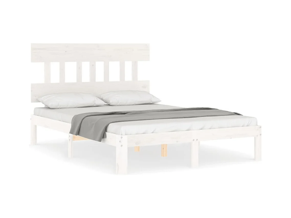 Wit bedframe 140 x 190 cm Massief grenenhout