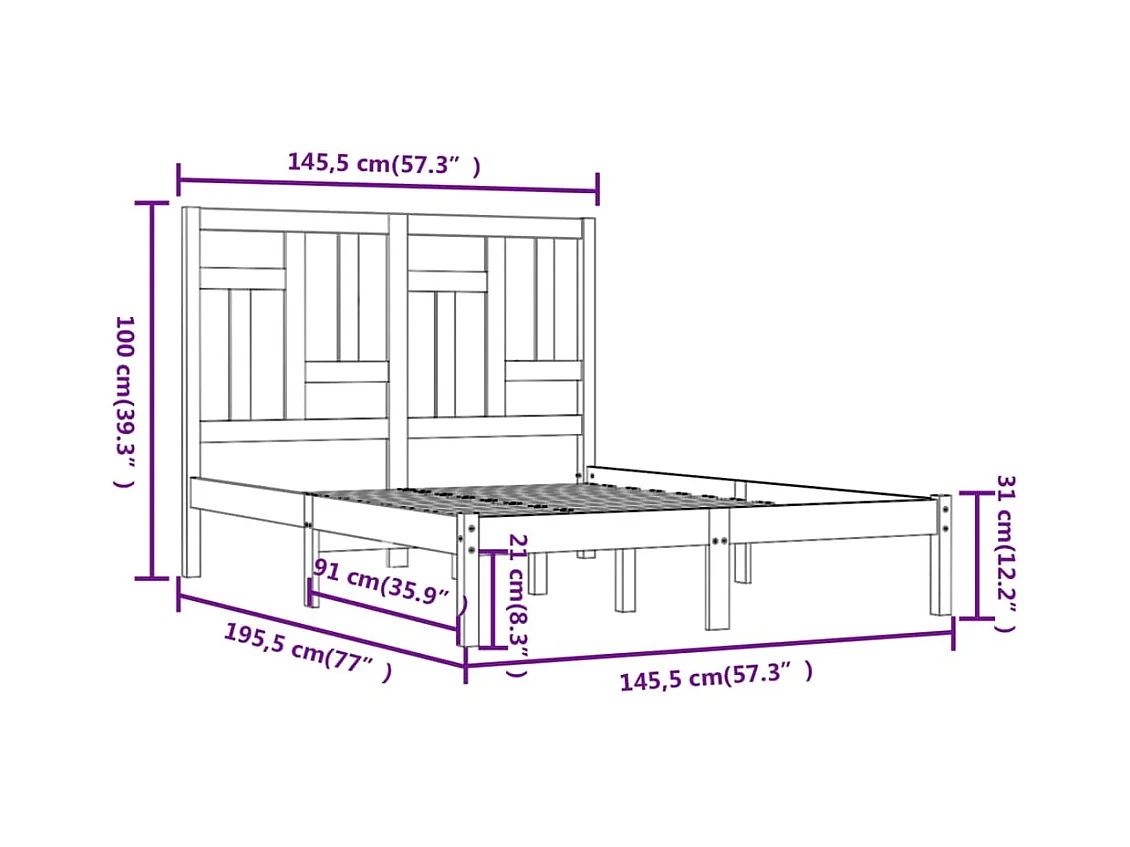 Wit bedframe 140 x 190 cm Massief grenenhout