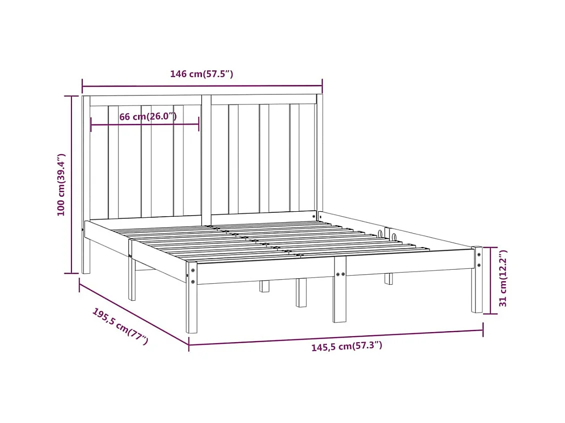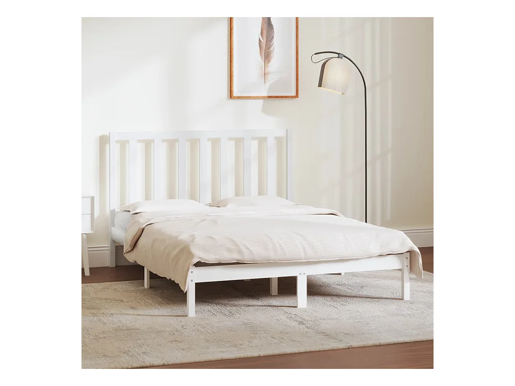 Wit bedframe 140 x 190 cm Massief grenenhout