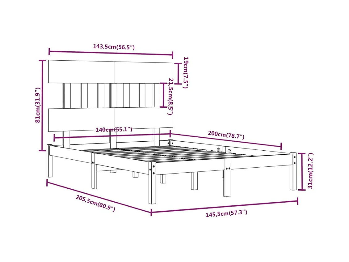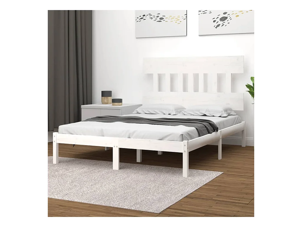 Wit bedframe 140 x 200 cm Massief grenenhout
