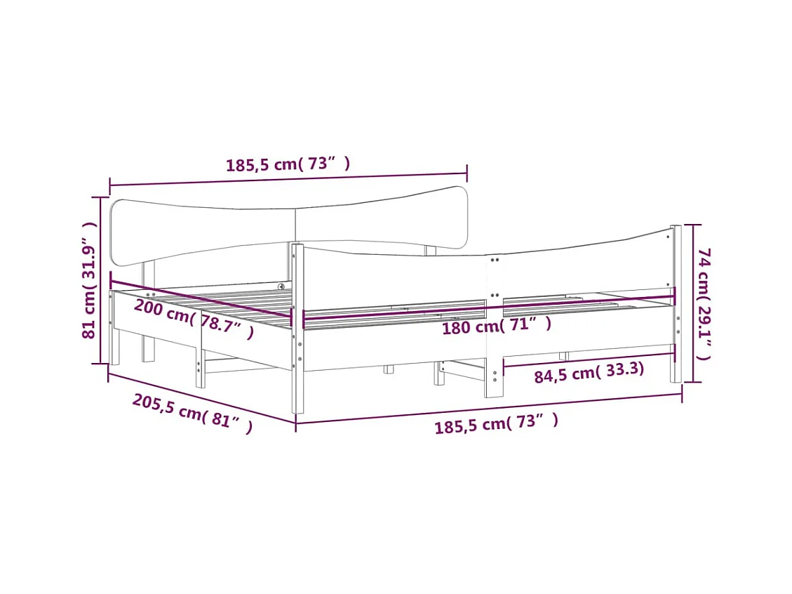 Bedframe zonder matras wit massief hout 180x200 cm