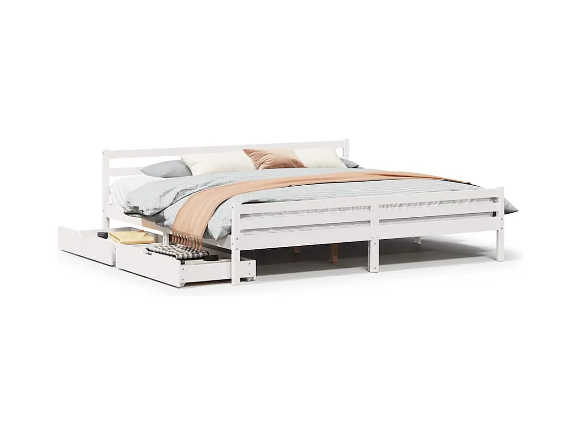 Bedframe zonder matras wit 200x200 cm massief grenenhout