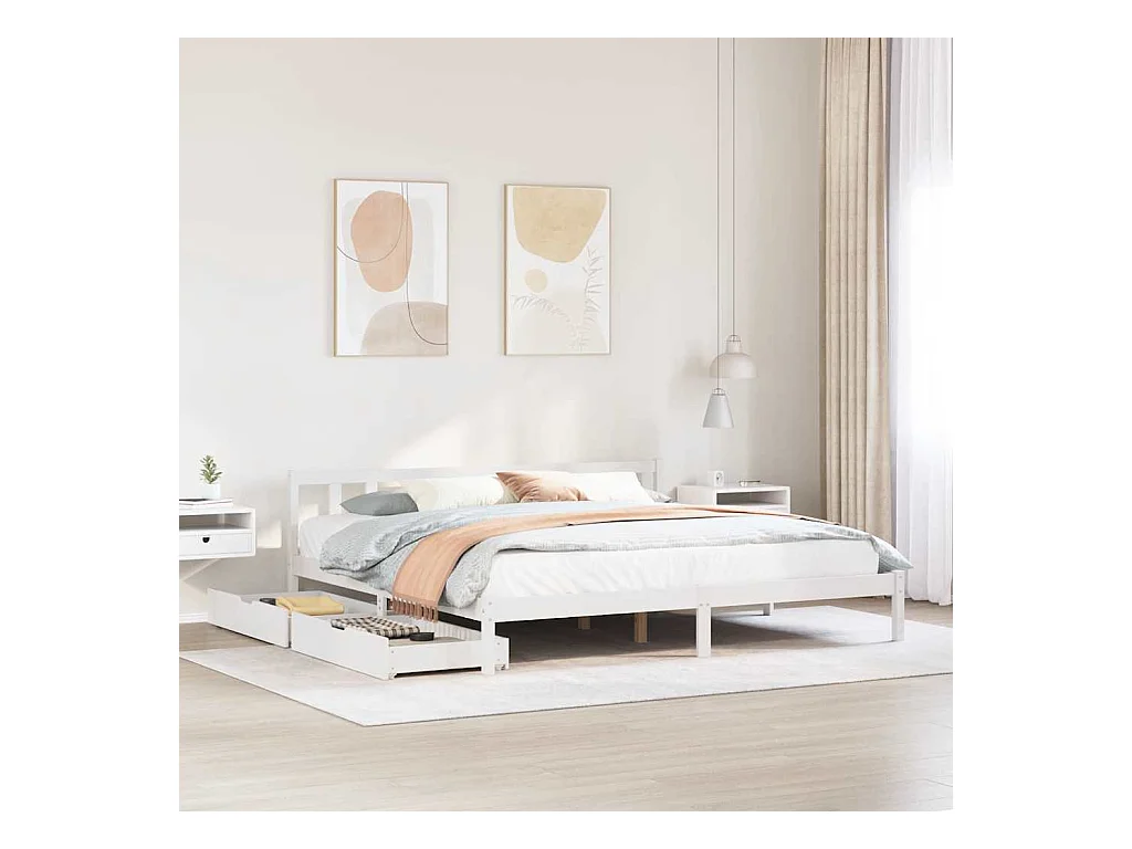 Bedframe zonder matras wit 200x200 cm massief grenenhout
