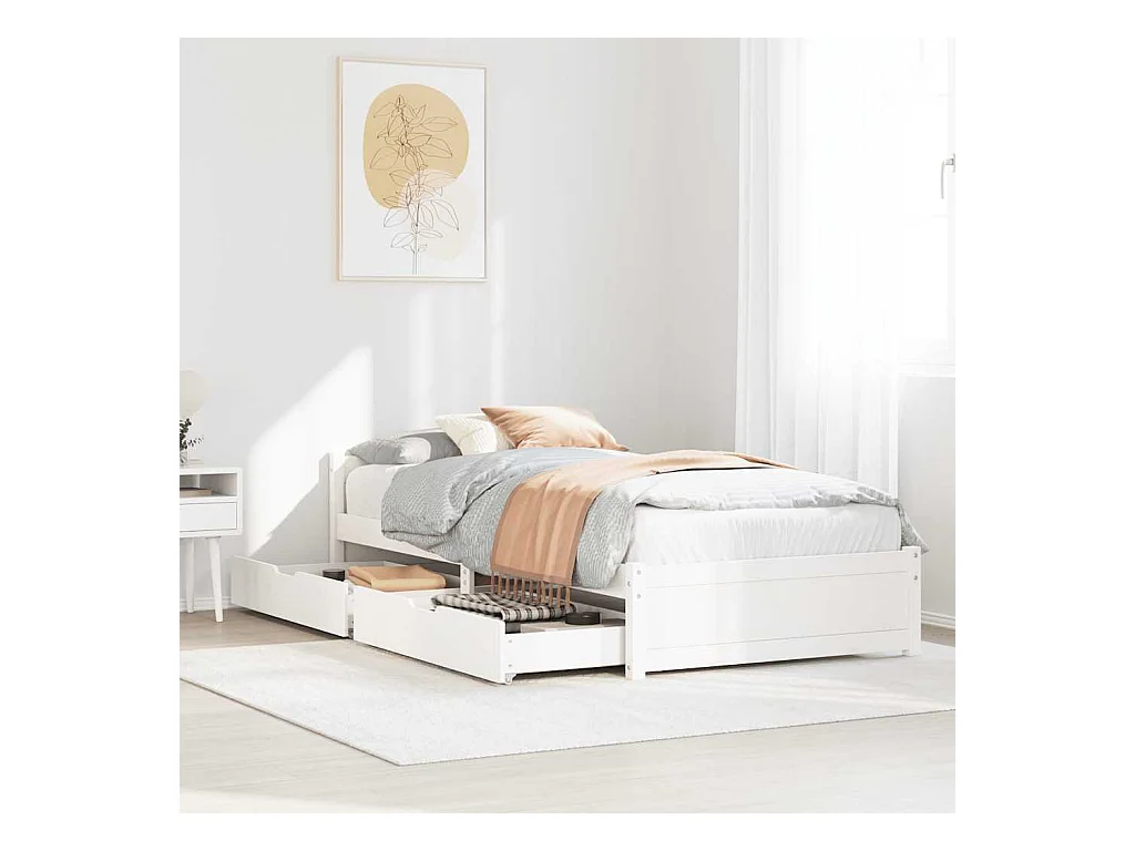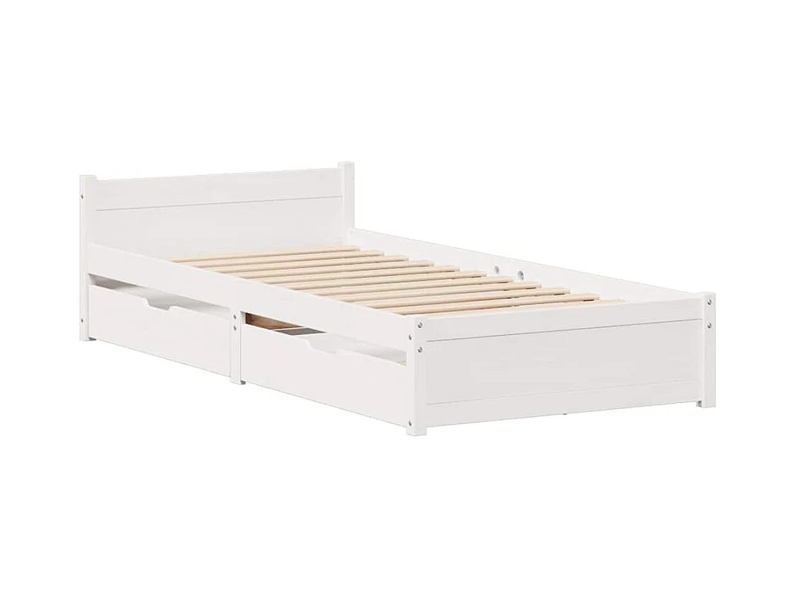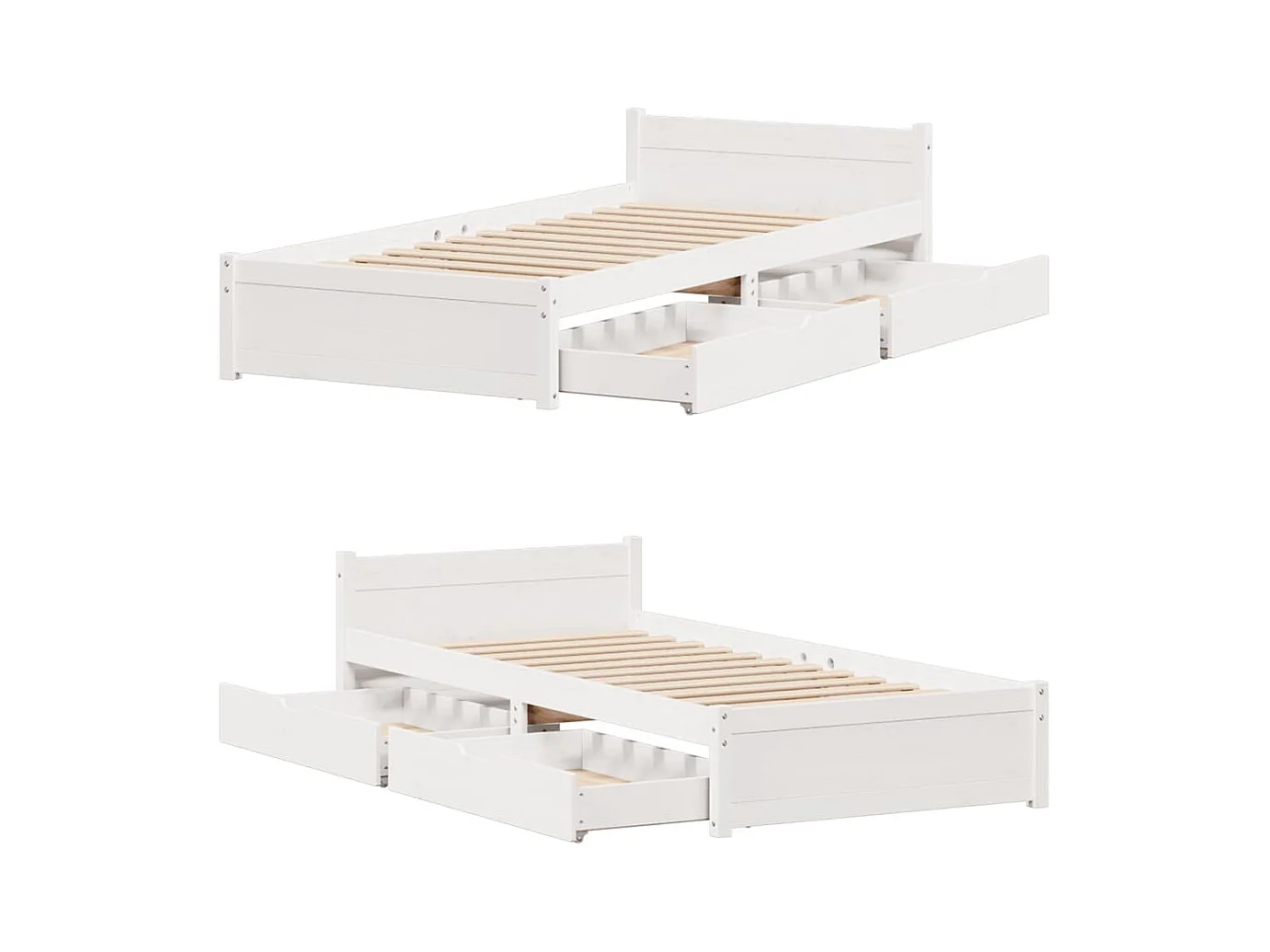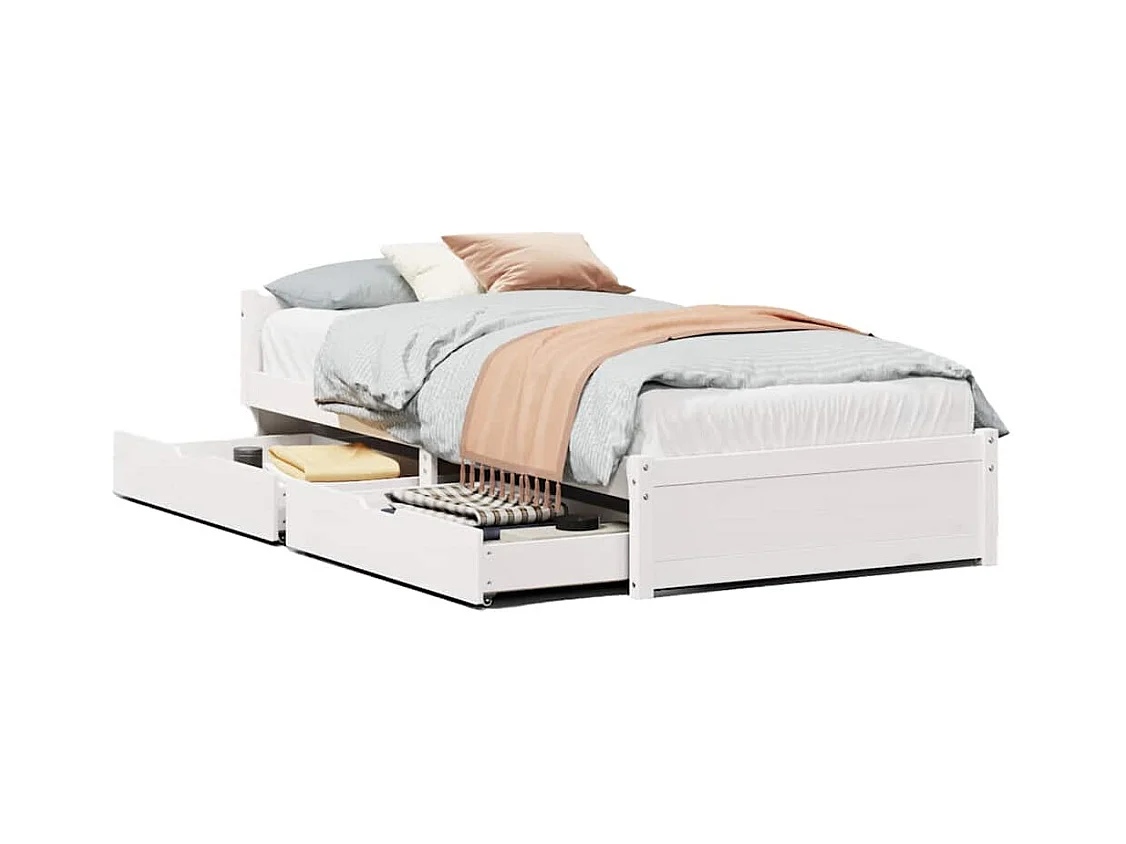 Bed met lades en witte matras 90x190 cm massief grenenhout
