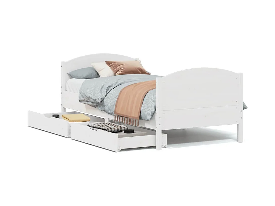 Bed met lades en witte matras 90x190 cm massief grenenhout
