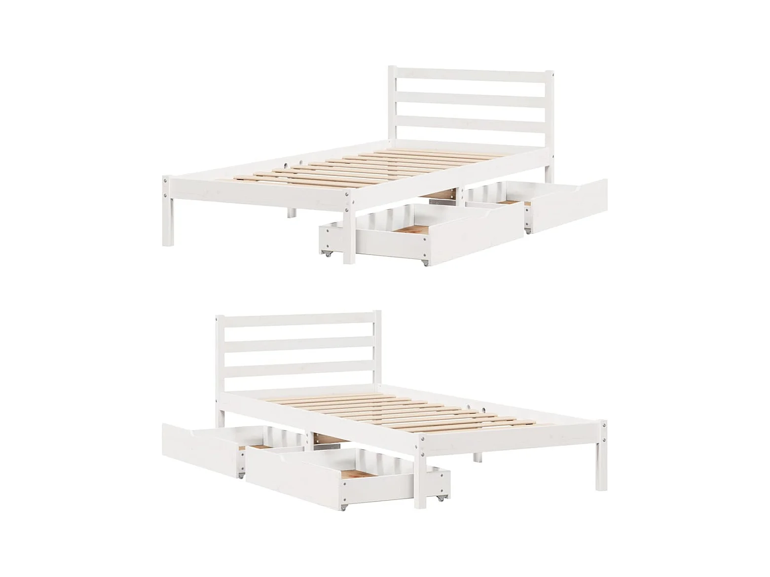 Bed met lades en witte matras 90x200 cm massief grenenhout