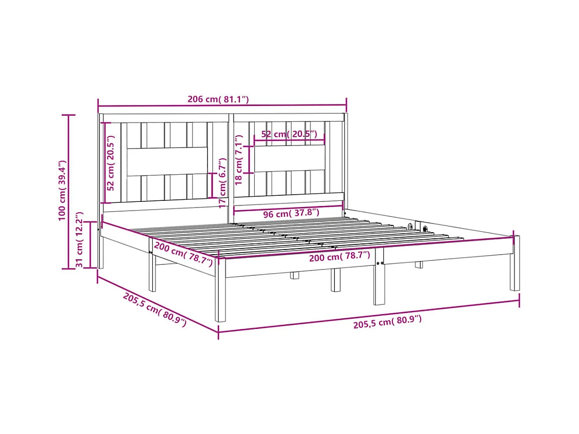 Bedframe zonder matras wit 200x200 cm massief grenenhout