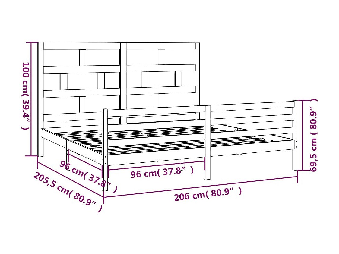 Bedframe zonder matras wit massief hout 200x200 cm