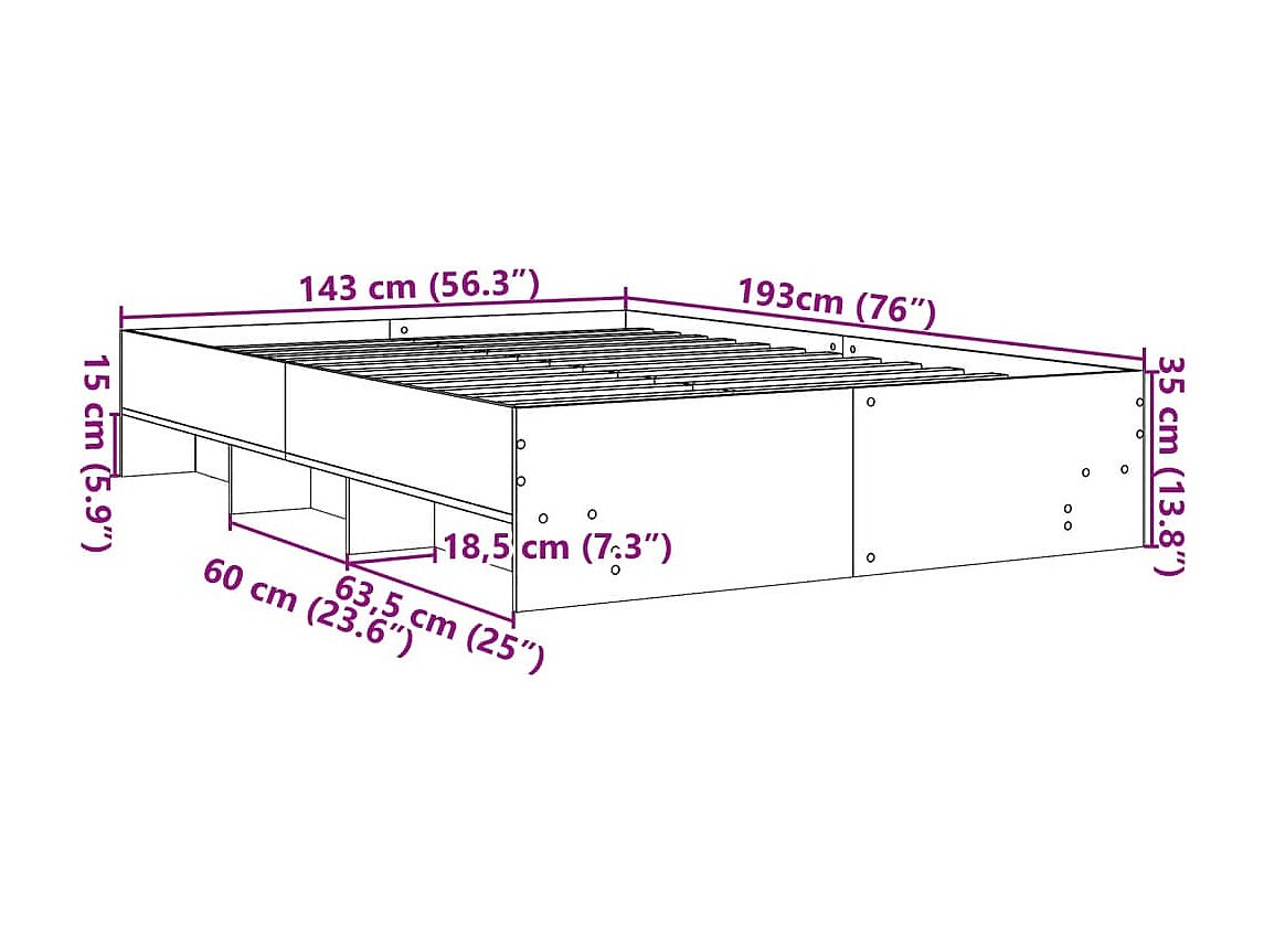Bedframe zonder matras zwart 140x190 cm bewerkt hout